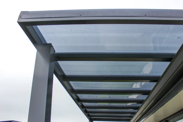 We use a 6mm polycarbonate solid flat sheet. Colours grey tint or diffused opal.