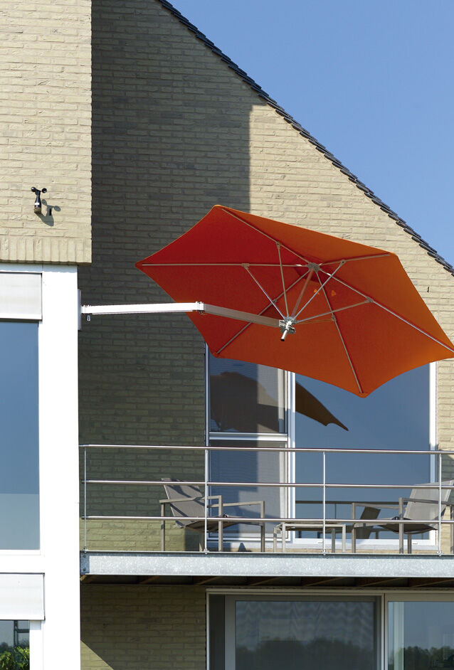 Sensible and stylish the Paraflex is a wonderful solution for tight spaces. Simply attach it to a wall then use the clever simple click bracket for effortless operation and quick removal. Whether balcony or patio, the Paraflex provides shade in spaces where a conventional umbrella is simply impractical.
