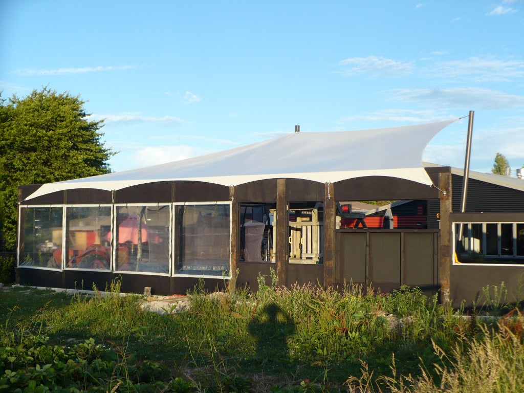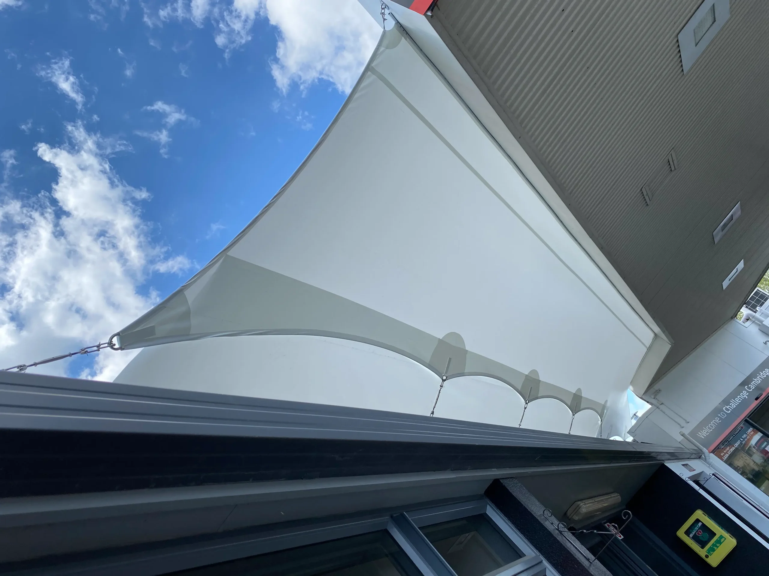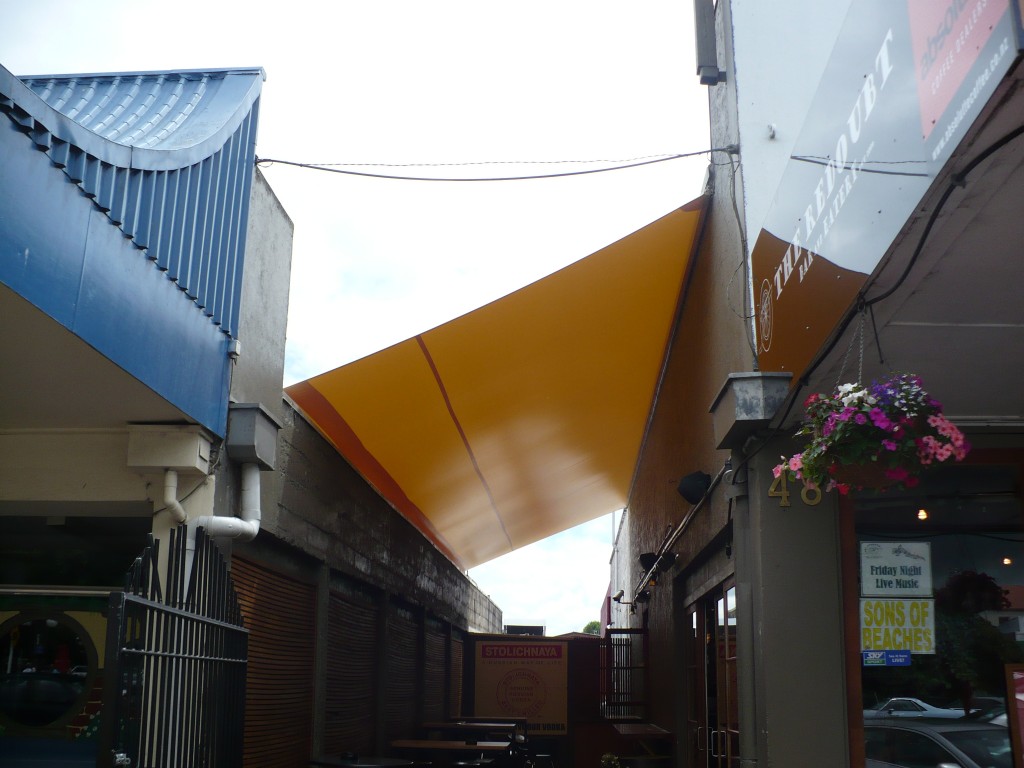 Unlike the many carports that are commonly seen around rusting and rotting, PVC Shade Sails don’t rust or rot. The steel posts we use are galvanised and powder coated so they are less likely to rust. There are a huge selection of colours for both the sail and the posts which can be colour co-originated to blend with your house and surroundings. Waterproof sails are ideal for uncovered porch areas, cafés, barbecue areas, carports, school courtyards or playgrounds and so much more. You would be surprised how the right design can actually enhance your environment. Installation wise they are a bit more complex than shade sails as the structures need to be heavier to handle the weight of water and pressure of wind. We use only top quality materials knowing that shortcuts can cause potential disaster further down the road.